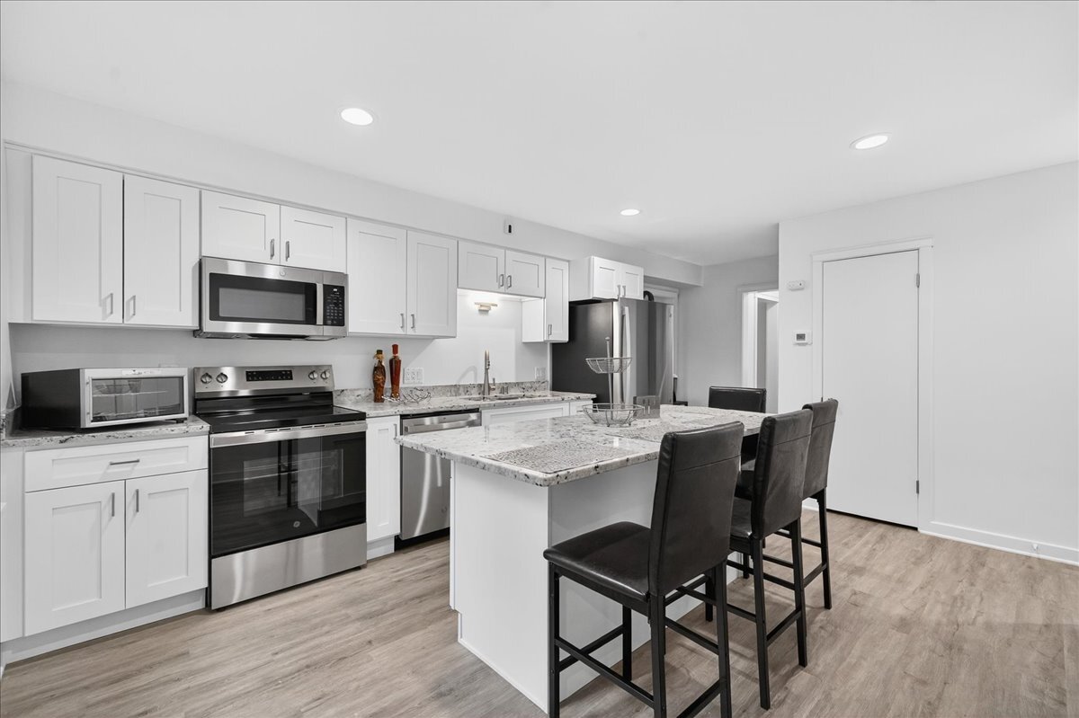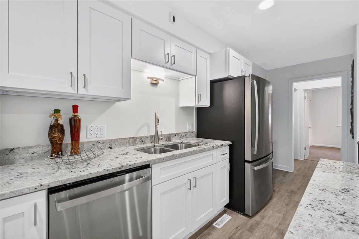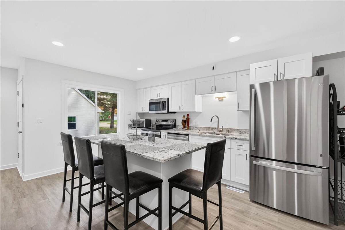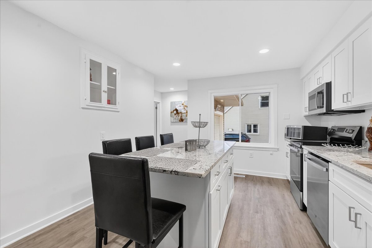 Totally renovated and move-in ready! This charming ranch has been beautifully refreshed from top to bottom with new LVP flooring & carpet, fresh paint throughout, and a fully renovated kitchen and bath. Kitchen has large granite island that can double as a dining table. Bathroom includes tiled shower surround & floor. The lower-level rec room has also been completely redone—perfect for movie nights, hobbies, or extra living space. Enjoy the new stone landscaping, refreshed deck, fenced backyard, attached garage, and quiet location just minutes from parks, schools, and downtown Sun Prairie. A turnkey opportunity that blends modern updates with classic comfort! Measurements are approximate; buyer to verify if material.