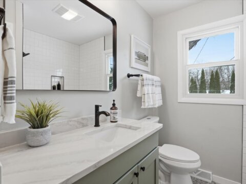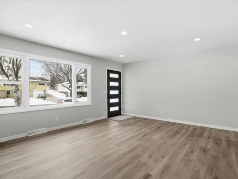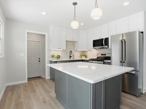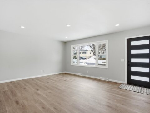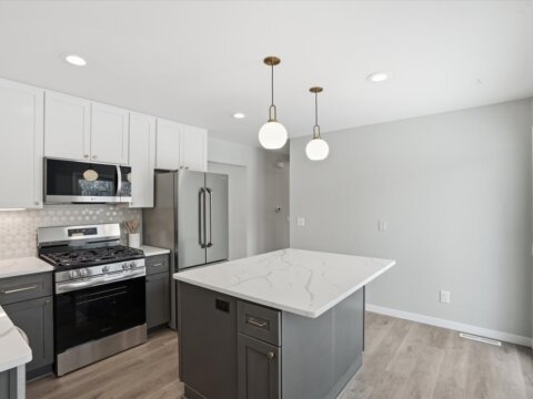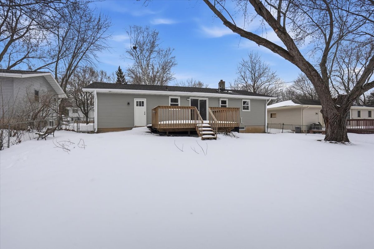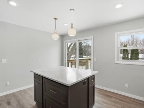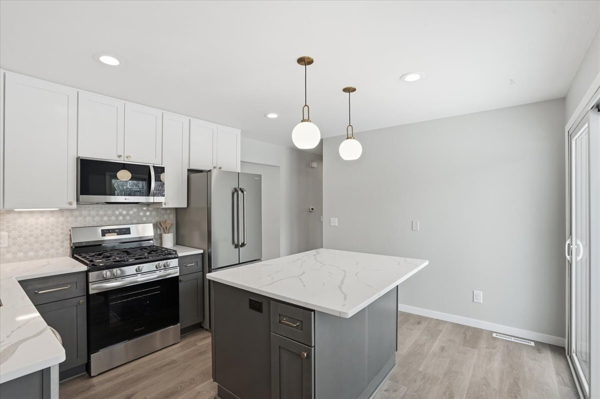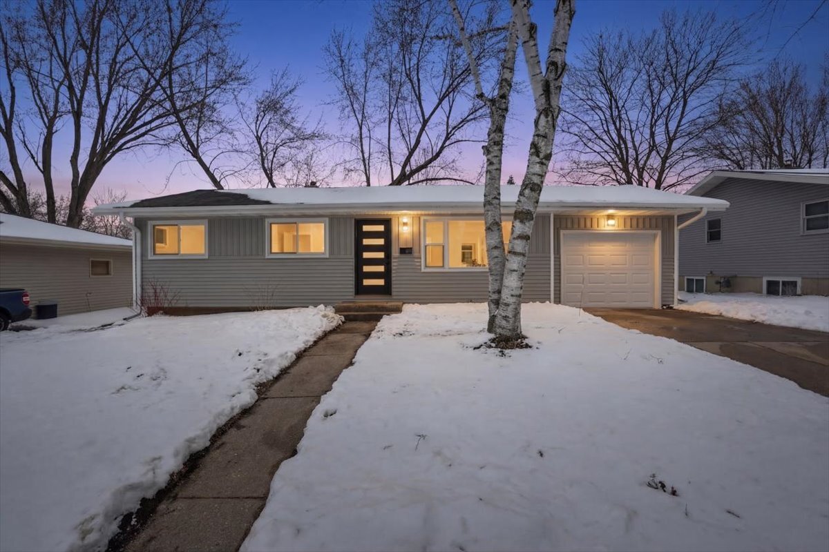 This fully renovated ranch on a quiet street offers modern luxury and move-in readiness. Step into a bright main level featuring brand-new luxury vinyl flooring, fresh paint, crisp trim, updated lighting, new doors, and energy-efficient Andersen windows throughout. The heart of the home is the spectacular remodeled kitchen boasting a large island, gorgeous quartz countertops, cabinets with dovetail soft-close drawers and 42″ uppers, stylish tile backsplash, and SS appliances. The updated bath impresses with a beautiful quartz top vanity, tiled shower, and all-new plumbing fixtures. Downstairs, a newly finished 400 sq ft rec room adds valuable living space. Patio door off the kitchen walks onto large deck overlooking the private backyard. Oversized 1car garage is attached and includes new garage door & opener. Also new siding, gutters and furnace! Measurements approx.