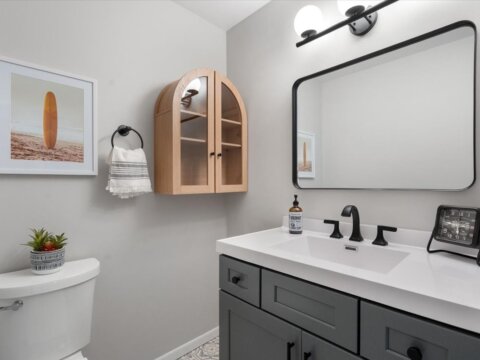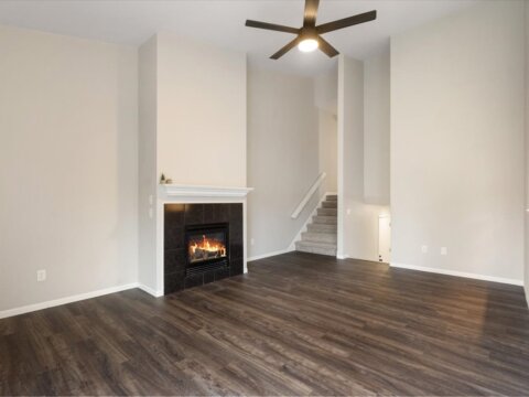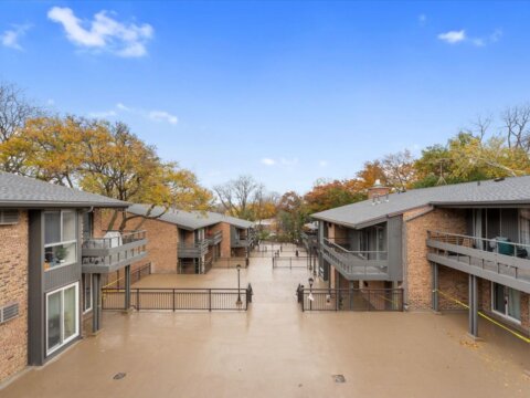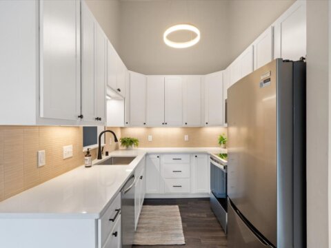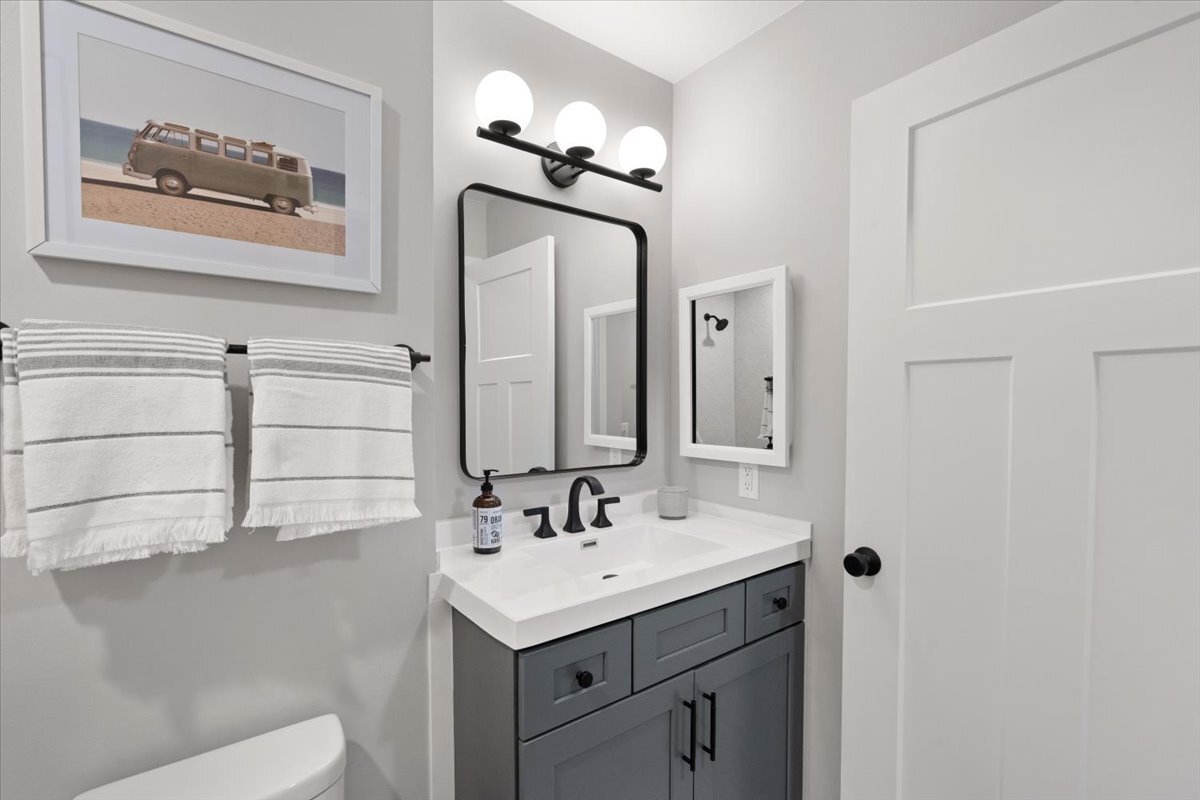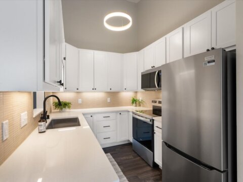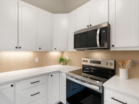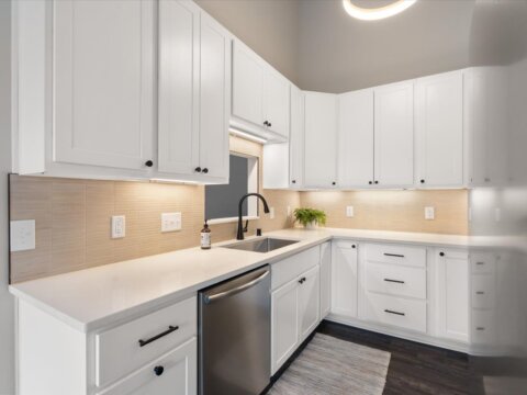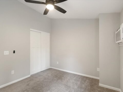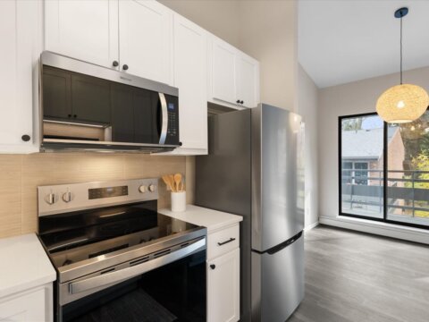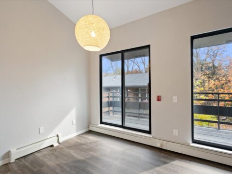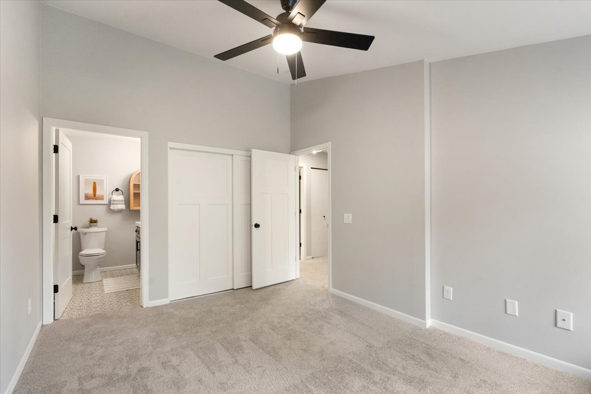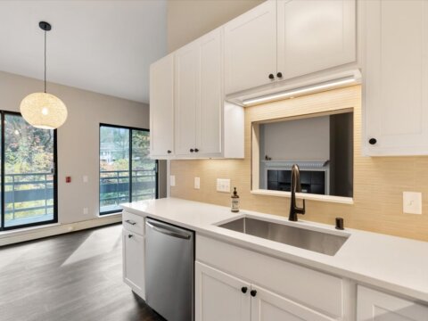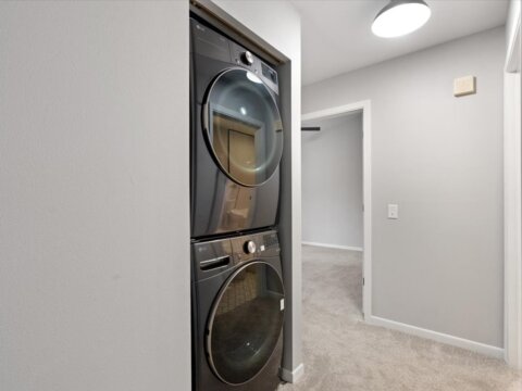 Lots to love in this renovated 2bd Middleton condo! The main living area (living, dining, kitchen) is extra spacious due to the tall vaulted ceiling. Two patio doors walkout to a large private balcony. Kitchen has been completely updated with new cabinets, quartz counters, tile backsplash, SS appliances, and inviting under-cabinet lighting. New LVP throughout the main living area, and new carpet upstairs. Both bathrooms completely renovated, including a Fibo panel shower. All 3 wall AC units are brand new. All doors updated to a modern style. Fresh paint throughout. Plus in-unit laundry with brand new washer & dryer! Move in and enjoy! Heat and water included in condo fee. Measurements are approx.